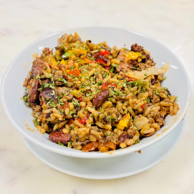 Ground beef & beef sausage cooked with tender red beans, onions, & bell peppers, then simmered in bold spices......