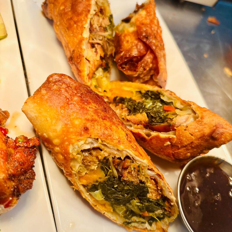A crispy, golden egg roll filled with tender jerk chicken & spices...... $13.00