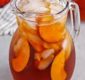 Sweet ripe peach flavored iced tea glass or pitcher