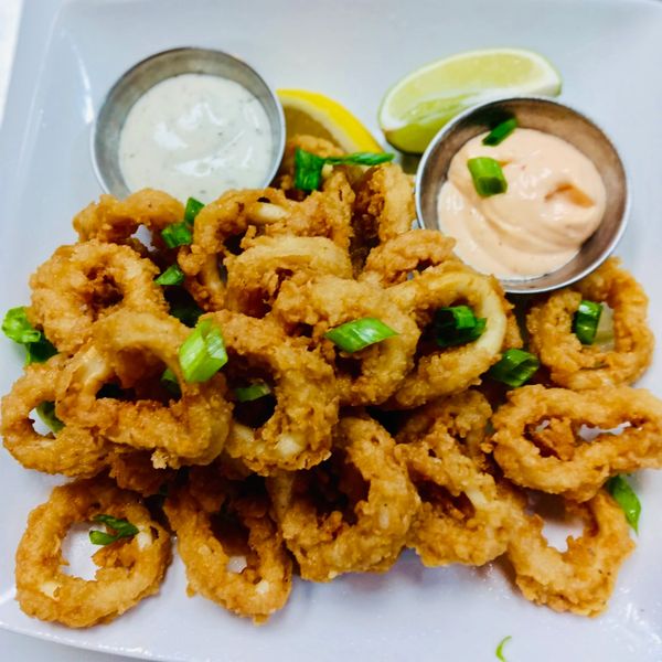 Deep-fried calamari marinated with lemon aïoli sauce or Bang Bang Sauce
