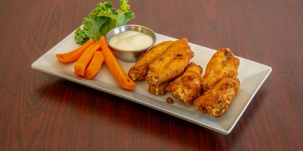 Six fried wings with choice of buffalo barbecue garlic, Parmesan, sweet chili sauce or Plain Fried